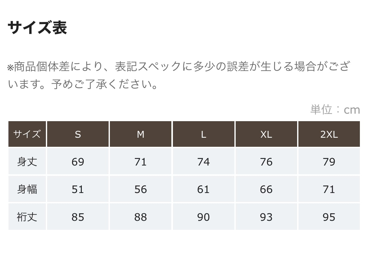 サイズ表画像で確認してください。